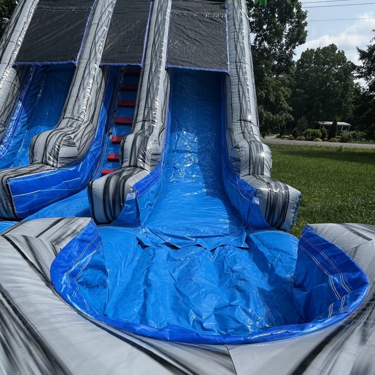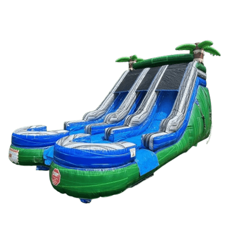 Paradise Falls is a 16-foot tropical water slide available for rent in Murfreesboro, TN and surrounding areas, bringing double-lane racing excitement and refreshing splashdown fun to backyard parties and community events across Rutherford County.